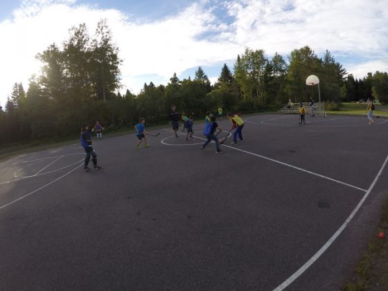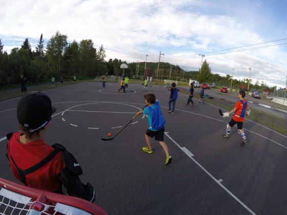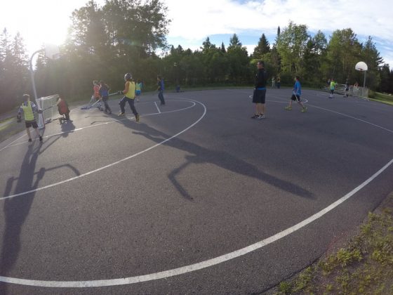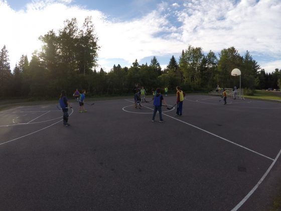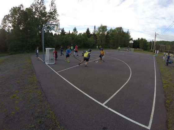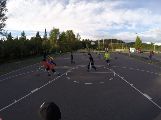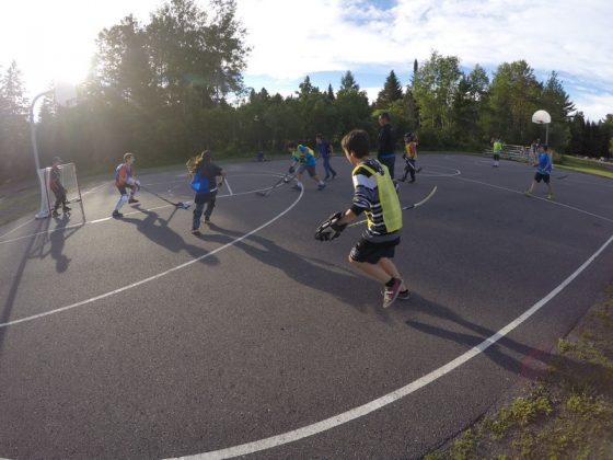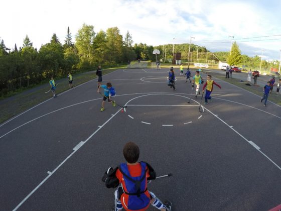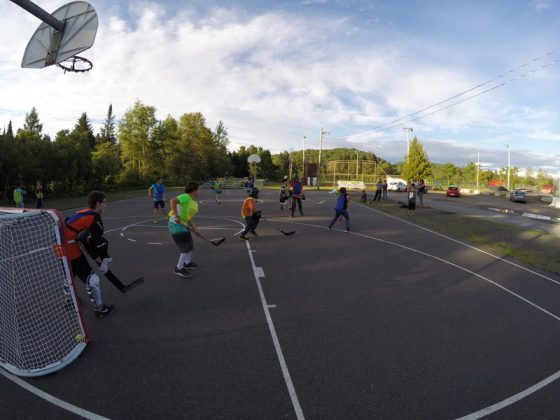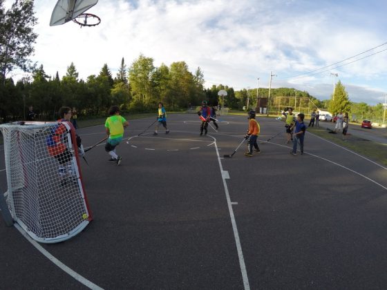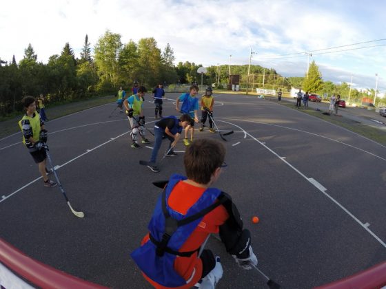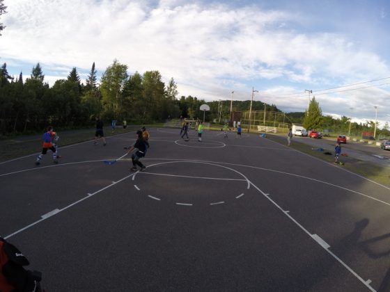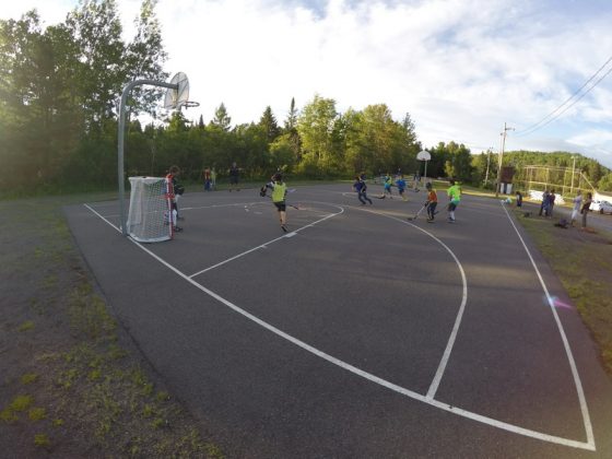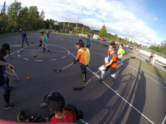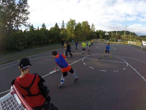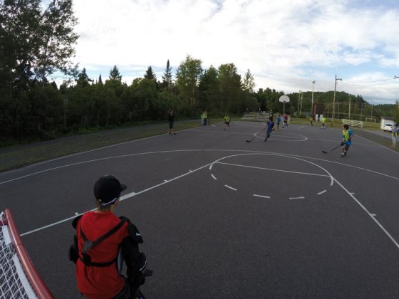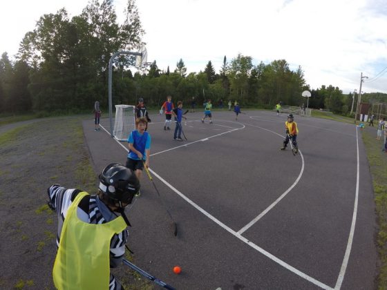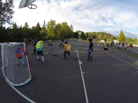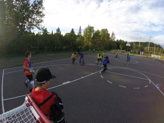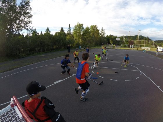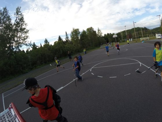 Aucunement découragés, les animateurs Marc et Jacynthe de cette ligue amicale de hockey cosom ont déplacé les buts et accueilli le premier groupe de joueurs, les 9-12 ans. Les joueurs ont utilisé la surface de basketball pour le premier match d’une saison qui se terminera à la fin du mois d’août.