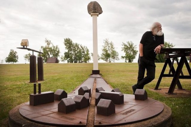 Ma sculpture est toujours là, en permanence depuis le jour de sa réalisation, juste devant le musée, et annonce en quelque sorte sa présence. Dans les faits, ce parc est situé, entre autres, aux abords du musée, à l’intérieur du parc René-Lévesque et le long des berges, jusqu’à la 52e Avenue. Pour ma part, j’y suis représenté avec six sculptures, dont trois de très grand format et trois autres de moyens formats qui habitent les différents lieux.