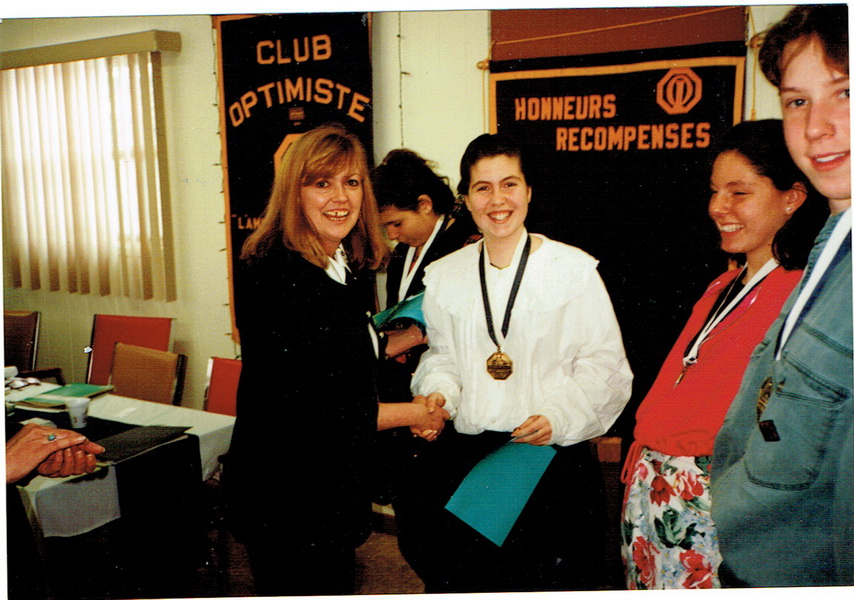 Lise Émery félicite Fanny Cloutier, médaille d'or Optimiste.