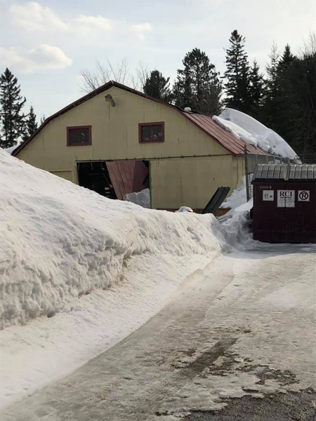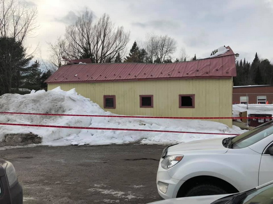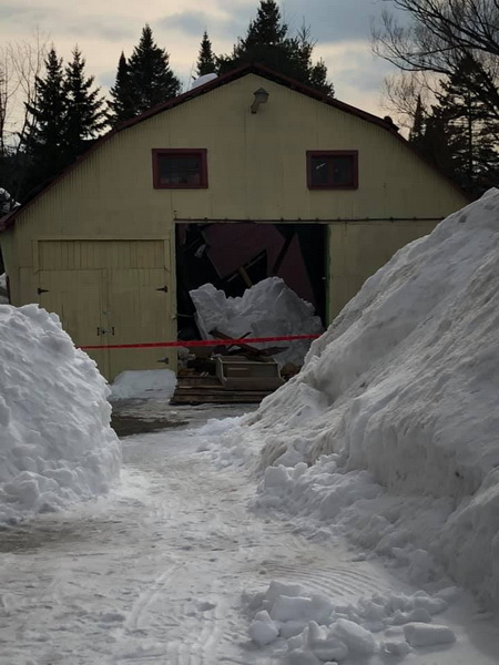 Le poids de la neige a eu raison de la grange dans le stationnement du Magasin général à Val-David en après-midi le jeudi 21 mars. Les témoins, âgés de 6 à 8 ans, en avaient long à raconter!