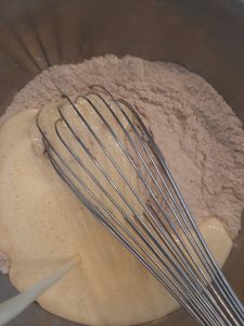 - Mélanger les ingrédients secs et les ingrédients liquides.