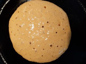 - Verser plus ou moins 80 ml de mélange à crêpe dans une poêle chaude bien huilée ou beurrée. Cuire 2-3 minutes de chaque côté.