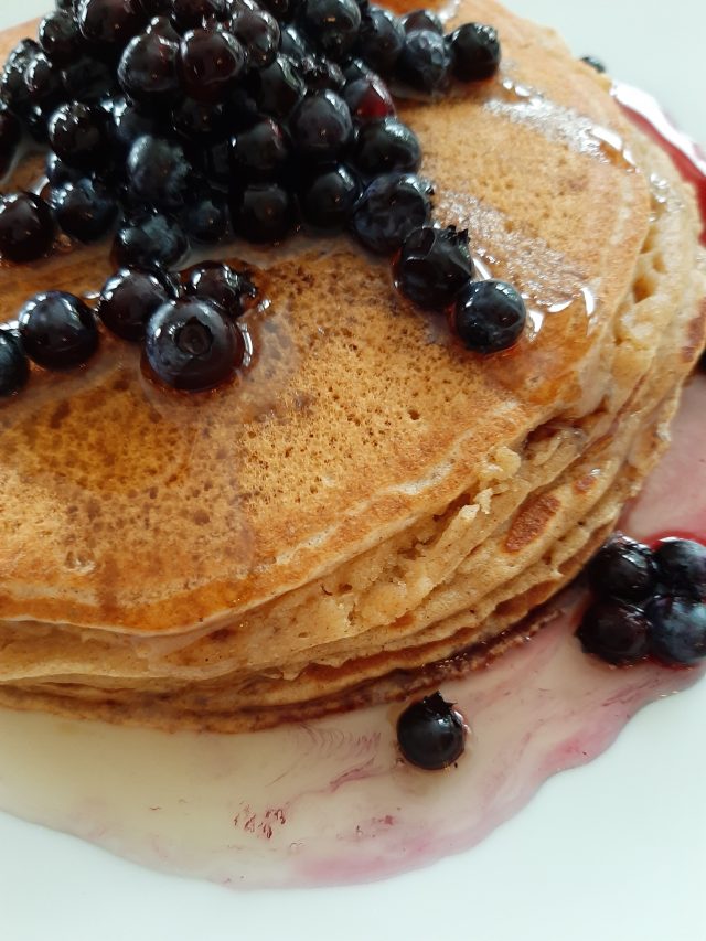 Ici, j’ai servi mes crêpes avec du sirop d’érable et des bleuets achetés l’été passé au marché de Val-David. Miam!