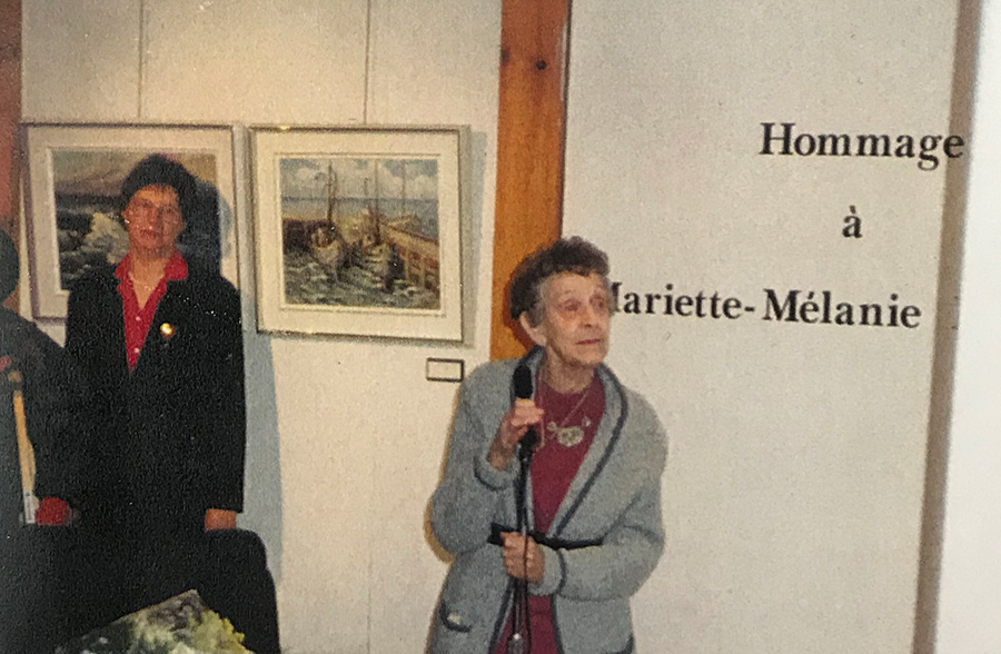 Vers 1973, le couple habite au 1612, chemin de la Rivière. L’atelier de l’artiste se trouve alors au deuxième étage de la résidence. Assez rapidement, Mariette s’implique dans la vie sociale du village. Elle devient membre de l’AFÉAS et participe, avec ce groupe, à plusieurs expositions d’art visuel et de travaux d’artisanat.