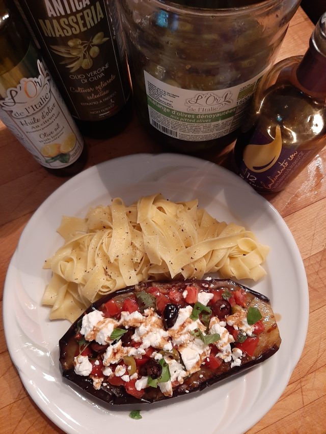 Ça sent l’été et le Marché de Val-David ouvre enfin. Ça donne le goût de cuisiner frais et simple. Voici un plat d’aubergines où j’utilise les super produits de l’Or d’Italie que l’on trouve au Marché d’été tous les samedis de 9 h à 13 h ou au Marché de Yann & Cie.