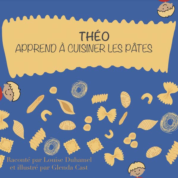 L’idée de l’histoire, confectionner des pâtes fraîches, m’est venue lorsque j’ai offert un laminoir à pâtes à ma fille. Quand elle était petite, nous avons eu tellement de plaisir à faire des pâtes ensemble et maintenant, elle allait répéter l’expérience avec son fils. Le flash : Théo allait apprendre à faire des pâtes! De petites histoires farfelues ont germé dans ma tête, des images s’y sont accrochées, puis le livre a pris forme.