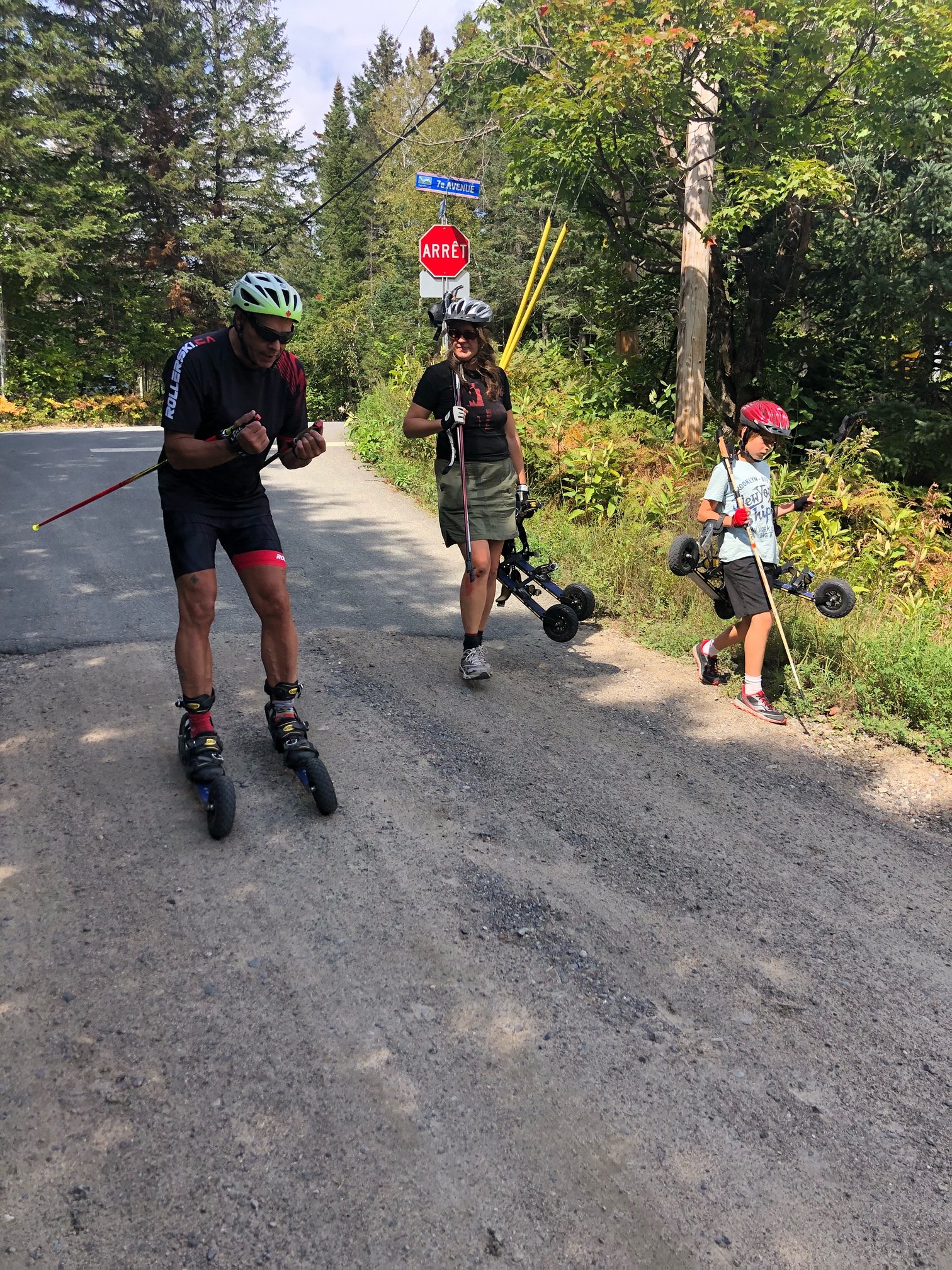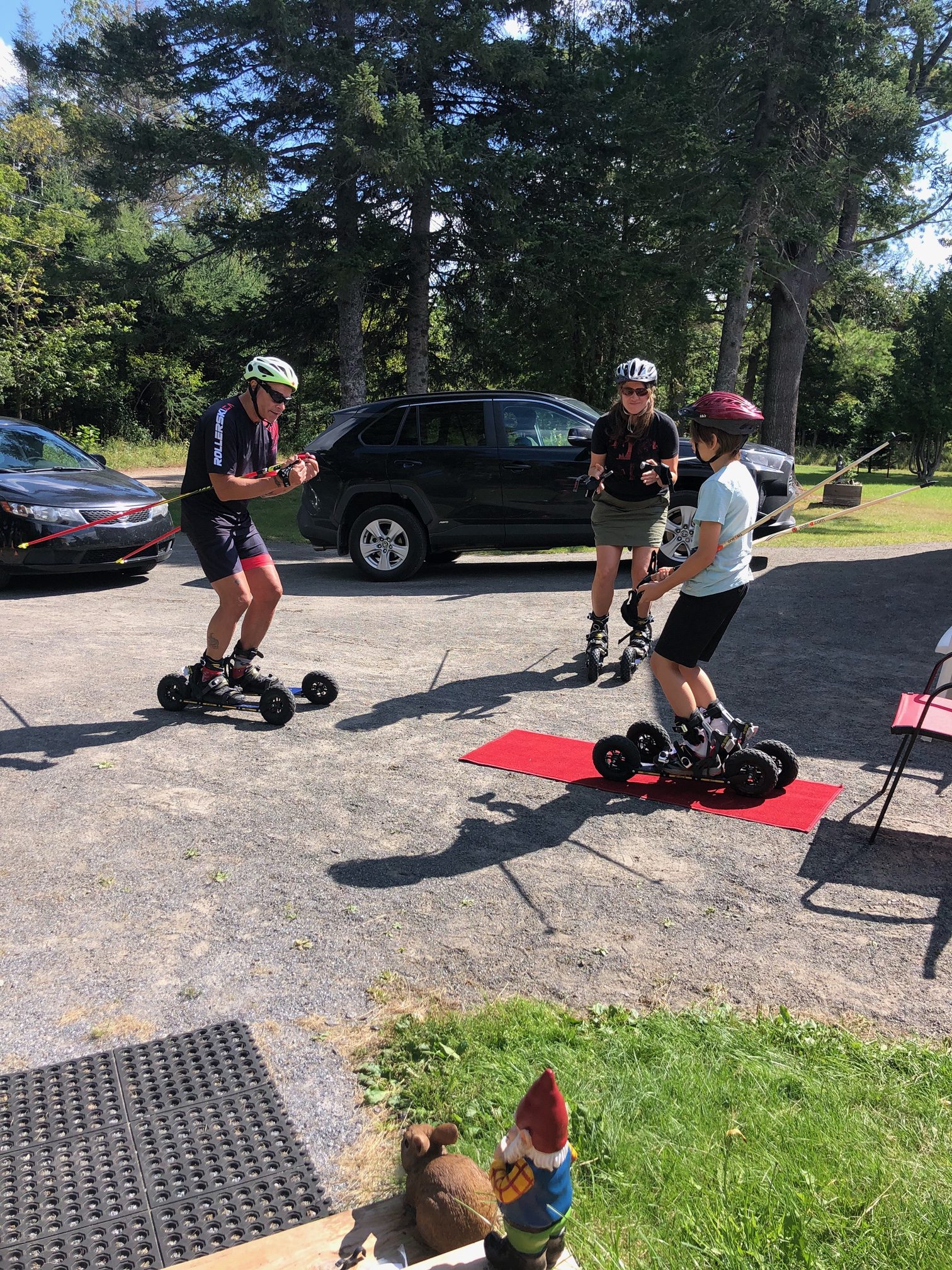 Phil Shaw et Annie Gauthier ont eu le plaisir d’initier deux premières personnes au rollerski tout terrain, ou ski à roulettes. Alcide et sa mère Isabelle les ont contactés le 10 septembre, et le 11, ils ont pu suivre une initiation d’environ 1 heure.