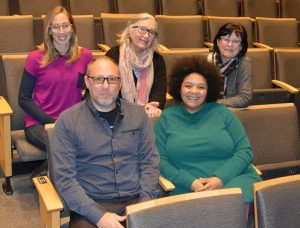 Photo souvenir de l’époque de Sandra au CA du journal Ski-se-Dit. Elle est avec Jocelyne Aird-Bélanger, Louise Duhamel, Richard Marleau et Nathalie Cawet.