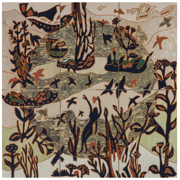 L’exposition réunit les œuvres récentes de René Derouin présentées en première à Québec. Cette longue pandémie a donné du temps à l’artiste de poursuivre son œuvre, qui expose la mouvance des migrations.