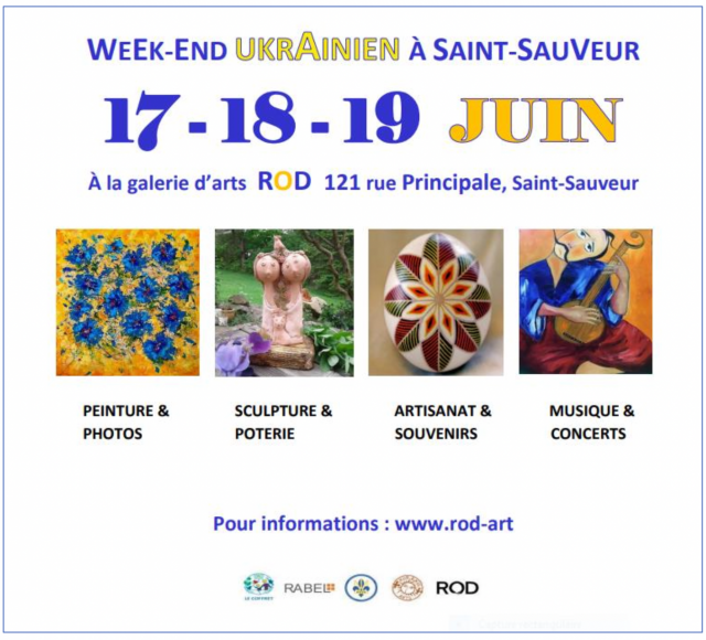 Cet événement, supervisé par le comité organisateur de l’événement Pour l’Ukraine – Une rencontre culturelle, va se tenir les 17, 18 et 19 juin prochain à la galerie d’arts ROD, située au 121, rue Principale à Saint-Sauveur.