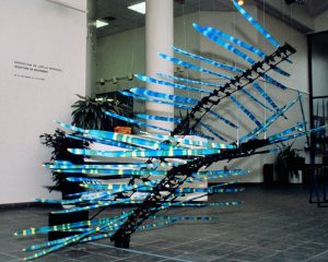 En écho, les démarches de Raphaël Biscotti (jeune relève originaire de Val-David), Véronique La Perrière M (artiste multidisciplinaire vivant à Val-David depuis 2020) et Joëlle Morosoli (pionnière de l’art cinétique au Québec) participent de cet élan bienfaisant dans une perspective intergénérationnelle. Interdépendantes, ces trois générations d’artistes font voir des points de vue multiples pour envisager notre rapport à la nature et toute sa complexité. Liaison vitale combien fondamentale bien au-delà de toutes les innumérables COP. Nous sommes de cette nature, simple poussière d’étoiles parmi tant d’autres.