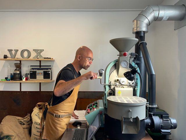 Par la suite, il s’agissait pour le torréfacteur de s’entourer d’une petite équipe fidèle et responsable. Amie de longue date, Stéphanie Gagné a été sa première recrue. Il faut dire que Stéphanie a travaillé au Mouton Noir pendant une décennie avant d’aller explorer le monde pendant 3 ans, en Nouvelle-Zélande, notamment. Son métier de barista (ou l’art de préparer des boissons originales avec le café expresso) et ses connaissances générales en la matière font de Stéphanie une collègue à même de maintenir très haut les standards de Vox, micro-torréfacteur et café.