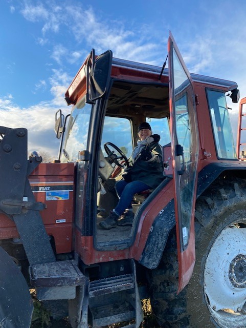 Marie-France Turgeon a fourni cette photo prise sur la ferme bio de l’un de ses fils, à Brownsburg-Chatham; elle y est bénévole depuis maintenant 5 ans. Je crois que le cliché fera bien rire ses anciens collègues du journal Le Devoir, où elle a travaillé de nombreuses années en tant que directrice de production. Sa formation universitaire en communication transparaît dans sa façon d’aborder les sujets, dans la finesse de ses propos et la profondeur de ses réflexions. Sous un calme apparent, c’est une femme énergique qui désire préserver sa ferveur pour s’engager et s’indigner, si besoin est!