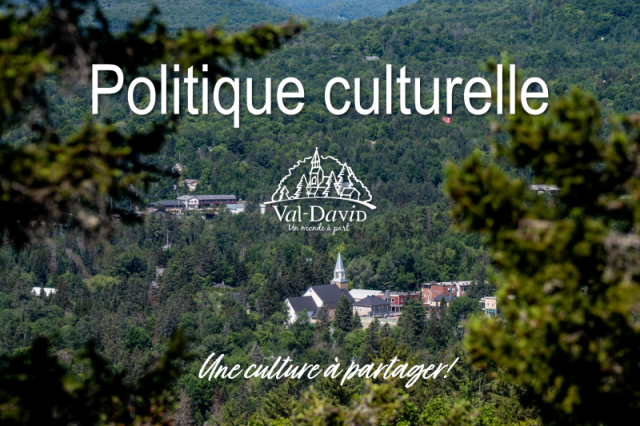Pour suivre l’évolution de cette démarche et pour plus d’informations, veuillez consulter la page dédiée sur le site internet de la Municipalité : valdavid.com sous l’onglet Culture/Politique culturelle.