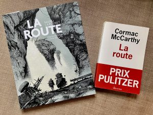 De mon point de vue, le bédéiste Emmanuel « Manu » Larcenet est le plus grand artiste illustrateur vivant, comme scénariste (Le retour à la terre, Le combat ordinaire, Blast) ou comme adaptateur d’œuvres romanesques (Le rapport de Brodeck, de Philippe Claudel). Ce qu’on remarque avant tout, outre le trait de crayon unique, c’est sa sensibilité et son empathie envers la faiblesse humaine. Et il en fallait des masses pour adapter en bande dessinée La Route, le célèbre roman postapocalyptique de l’auteur américain Cormac McCarthy; là où tout est ténèbres gris cendre, destruction, froid, saleté, horreur, on trouve peut-être, tout au bout, une lueur. Ce fabuleux roman, qui a eu une résonance universelle lors de sa parution, a reçu le prix Pulitzer de la fiction en 2007.