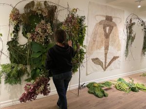Artiste émergente, Andréanne le. Hudon peuple ses immenses tableaux de créatures végétales saisissantes alors que ses assemblages botaniques et ses feuilles d’herbier intiment au regard de s’approcher de la nature où la peintre s’abreuve, méditative.