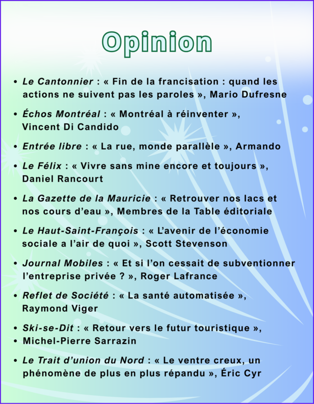 Le journal Ski-se-Dit a reçu une nomination dans la catégorie Opinion pour l’éditorial de Michel-Pierre Sarrazin, éditeur, paru dans notre journal de septembre 2024, et il a remporté la première place!
