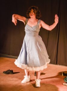 Danseuse interprète Karine Bernier (photographe Luc Valiere). Match d’improvisation 15 août au Théâtre du Marais à 19h30.