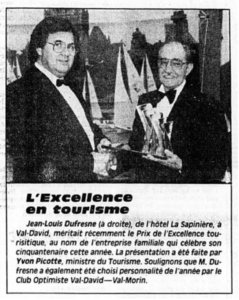 Jean-Louis Dufresne devient officiellement propriétaire de La Sapinière en 1952. Il en conserve la direction jusqu’à son décès, en 2003. Son travail de 65 ans à la direction de l’établissement constitue un record québécois et canadien, toujours inégalé, et est probablement la principale raison du succès local, national et international de La Sapinière.