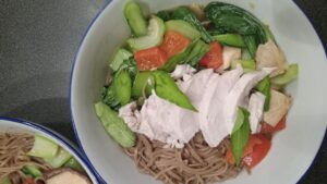 - Ajouter les nouilles fines et cuire 2 minutes, ou cuire les soba séparément, ou encore suivre les instructions de l’emballage.